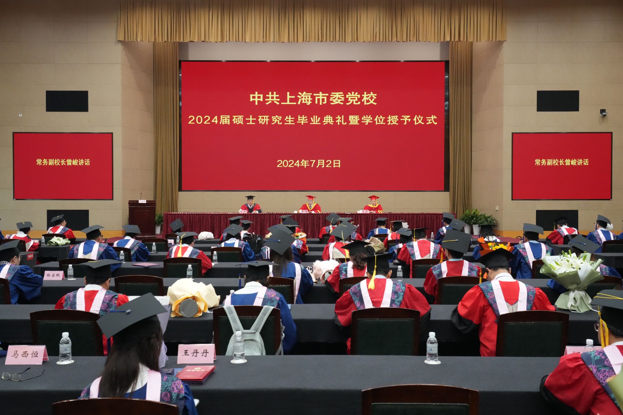 2024届学术型毕业生希琳、付星博和MPA毕业生高苗苗代表全体毕业生发言,回忆在党校三年学习和生活的点点滴滴,对母校、老师和家长等表达了诚挚的谢意,并表示要践行母校“忠诚、求实、开拓”的校训,在未来求学之路和工作岗位上,为国家和社会做出更大的贡献。