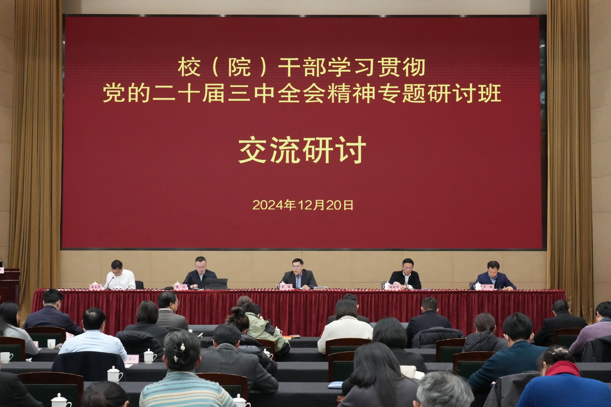 12月18日至20日,AG百家乐举办干部学习贯彻党的二十届三中全会精神专题研讨班,深入学习交流全会精神,并结合学校2025年工作谋划,研究推进工作的主要思路和创新举措。常务副校长曾峻进行开班动员和结业讲话,副校长谢根华、戴冰、罗峰、王永杰出席开班式和结业式,并参加学习。
